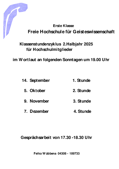 Kontinuierlich finden Klassenstunden und Gesprächsarbeit innerhalb der ersten Klasse der Freien Hochschule für Geisteswissenschaft statt.